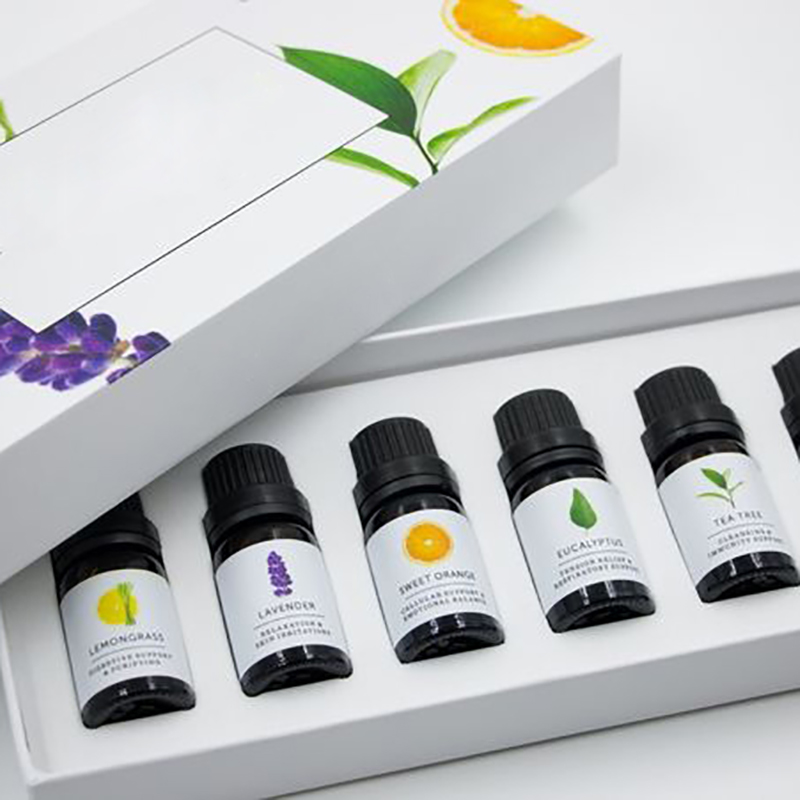 - essential oil + plastic thin film + packaging box + middle box + carton box